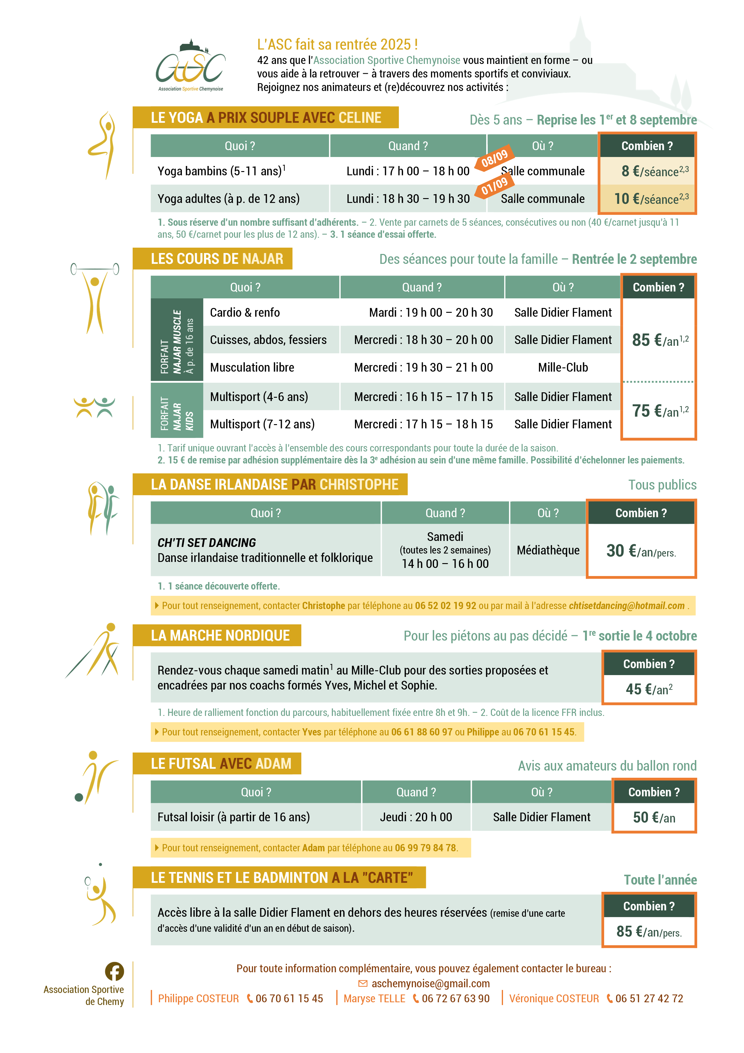 42 ans que l'association sportive chemynoise vous maintient en forme ou vous aide à la retrouver; A travers des moments sportifs et conviviaux